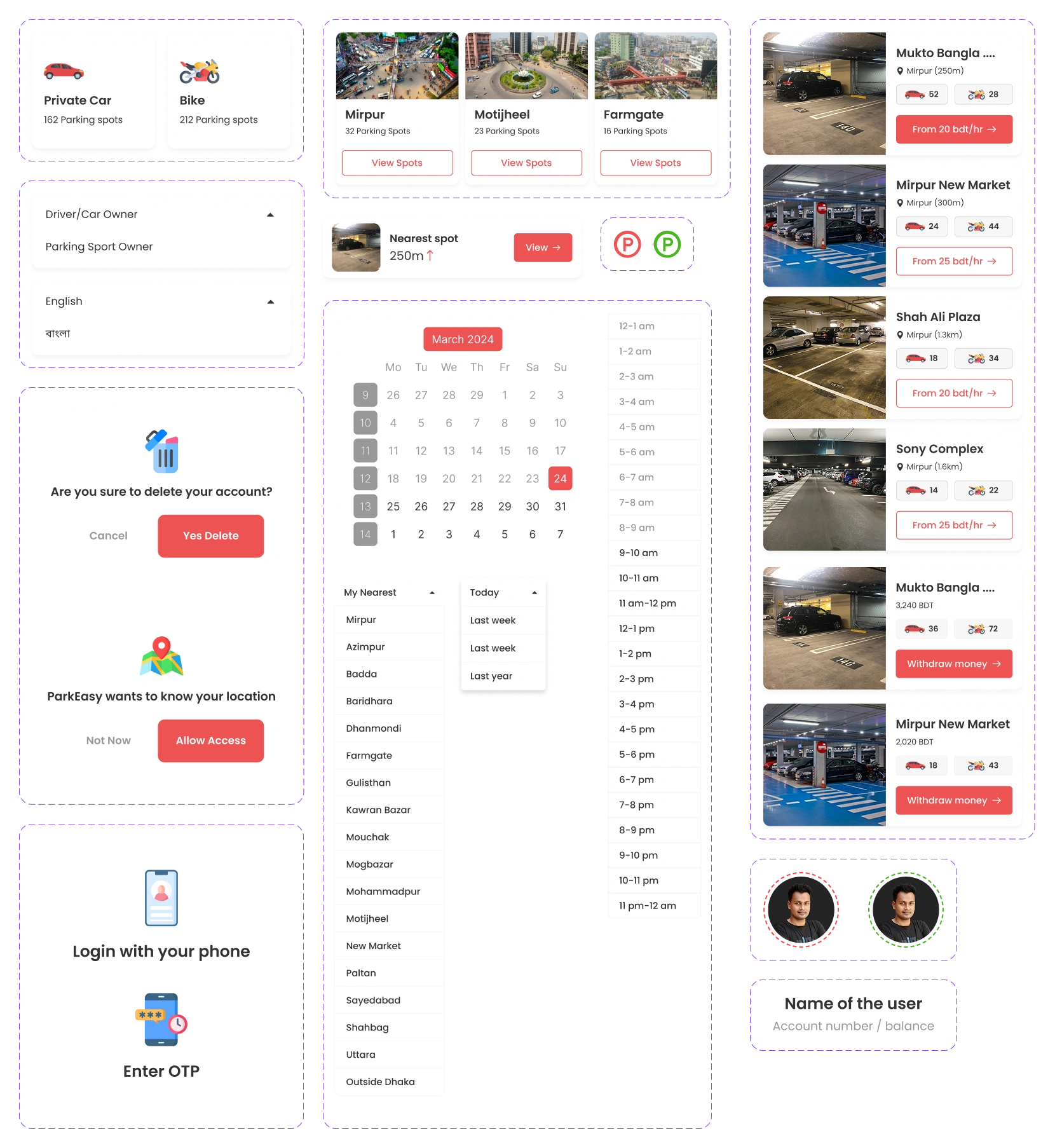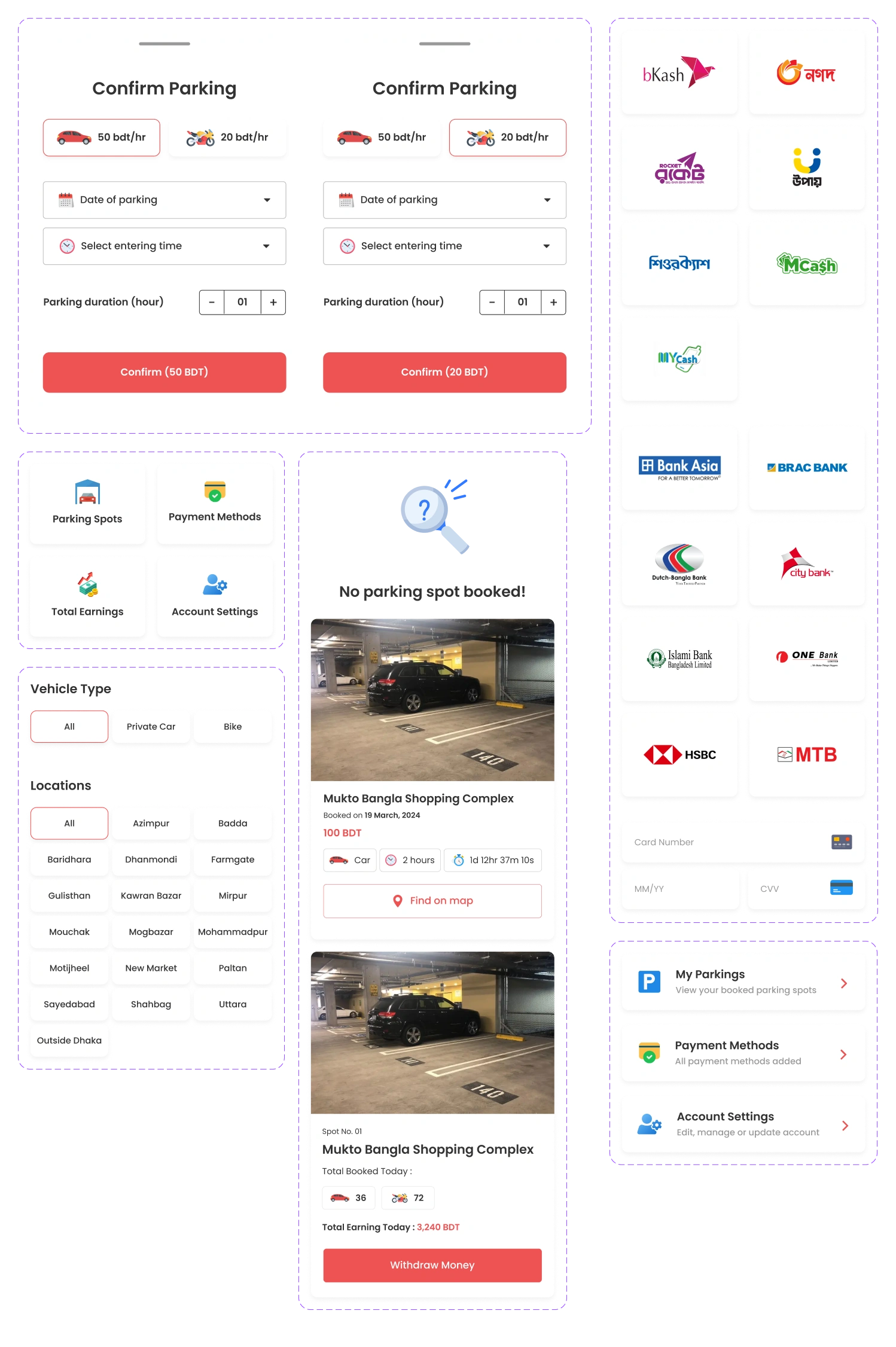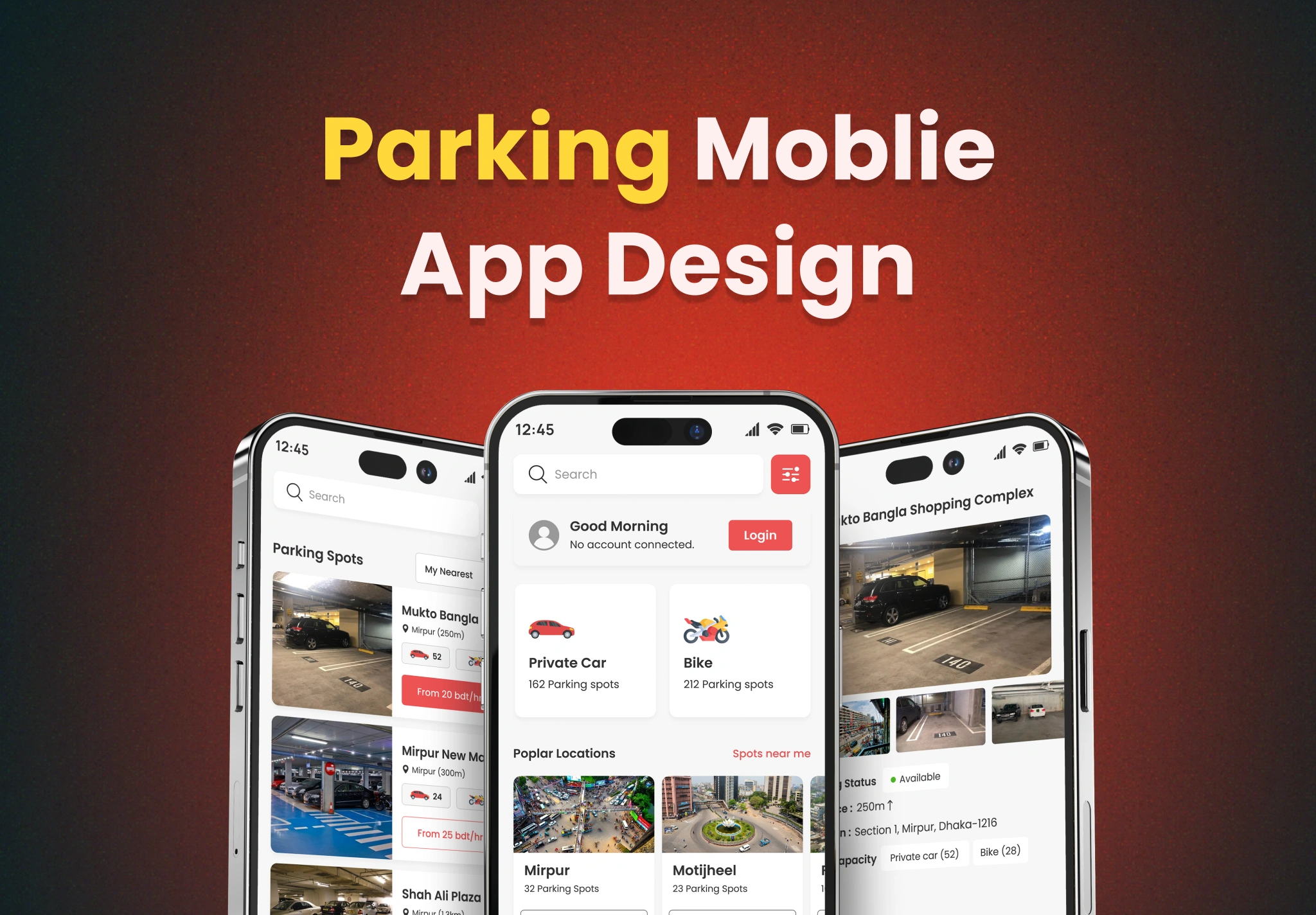 We designed a user-friendly mobile app that simplifies the parking experience from search to payment. With a clean interface and intuitive flow, users can quickly find nearby parking spots, check real-time availability, reserve spaces, and navigate with ease. The UI/UX focuses on reducing user friction, improving accessibility, and ensuring smooth interactions on the go. Designed in Figma with scalable components and a mobile-first approach, the app is fully optimized for both iOS and Android platforms.